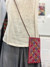 鮮やかなパレスチナ刺繍で彩られたシンプルな形のスマホポーチ。